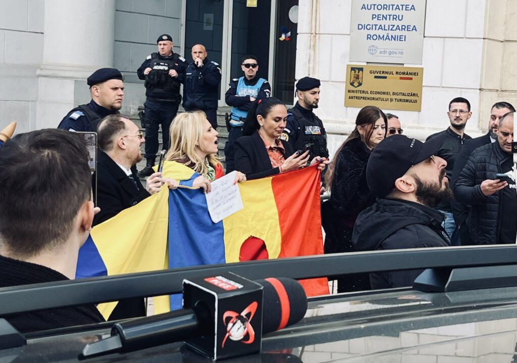 Scandările protestatarilor apar în rafale. Nu sunt neapărat constante și nici organizate. E ca un cor fără dirijor. „CNA, mafia!”, „Turul 2, înapoi!”, „Călin Georgescu, președinte!”, „Singura soluție este o revoluție!”, par a fi refrenele zilei. Unele mesaje au legătură directă cu decizia CNA referitoare la retragerea licenței pentru Realitatea Plus și Gold FM. Alte scandări sunt dintr-un registru politic. Ca într-un bazar de nemulțumiri, fiecare strigă ce îl doare.