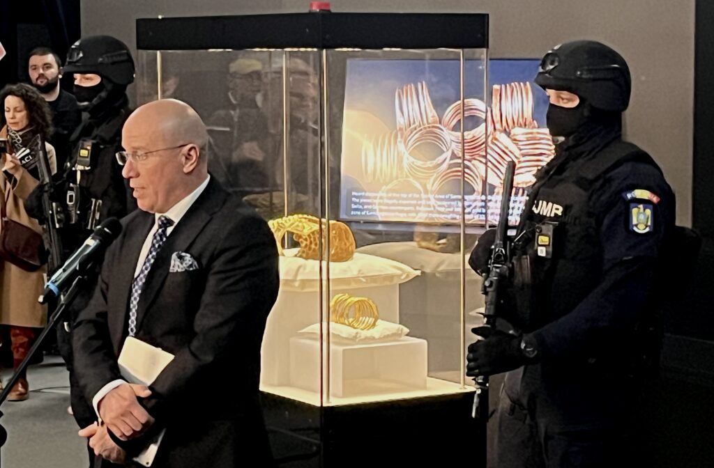 Ministrul vorbește și despre un plan mai amplu, anume aducerea patrimoniului mai aproape de public. „Coiful se întoarce la locul său din tezaurul acestui muzeu (MNIR – n.r.) de unde va putea fi scos pentru a fi integrat în diverse expoziții în muzeele țării”, a punctat oficialul. De altfel, el a specificat în cadrul conferinței că artefactele dacice vor mai părăsi România, în ciuda celor întâmplate.