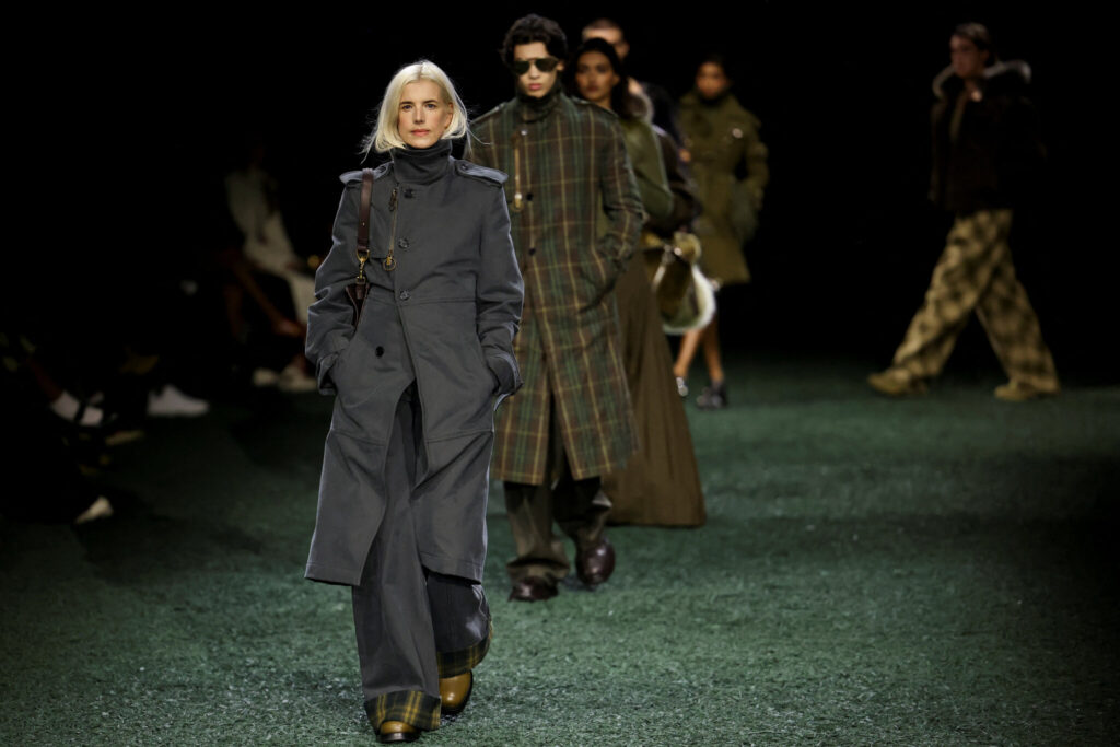 Burberry pledează pentru haine autentice pe podiumul londonez, intrând în forță printr-o schimbare de stil, îndepărtându-se de streetwear-ul edgy și mergând către hainele clasice.
