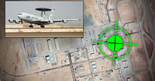 Imaginile arată că aeronava E-3 Sentry AWACS pare să fi fost secționată în două. Fotografiile au fost făcute la baza aeriană Prince Sultan, la aproximativ 100 km sud-est de capitala saudită, Riad, și elementele vizibile. Apar acolo piloni, unități de depozitare, marcaje de pe zonele pavate, iar elementele se potrivesc cu imaginile din satelit.