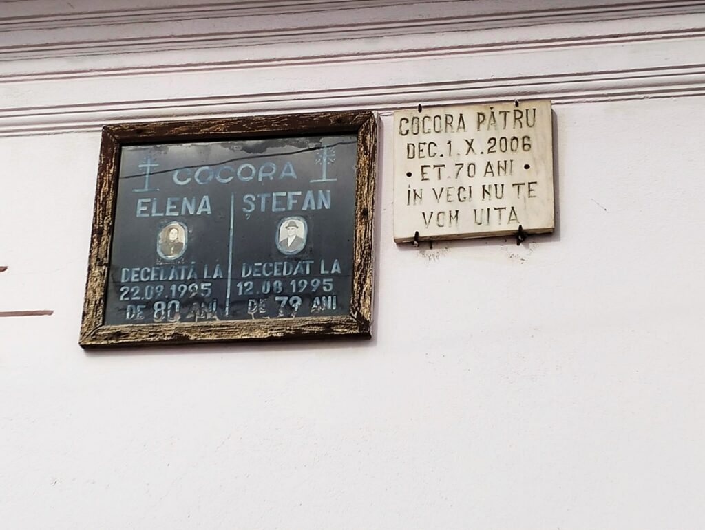Placa de marmură sau granit, cu numele, fotografía pe placa ceramică, datele de naștere și deces, uneori un vers sau un gând scurt, nu este un monument funerar în sensul clasic. Este mai mult o prezență, o mărturie. Casa nu devine doar un loc îndoliat, ci un loc cu memorie dublă, în care generațiile se suprapun vizibil.