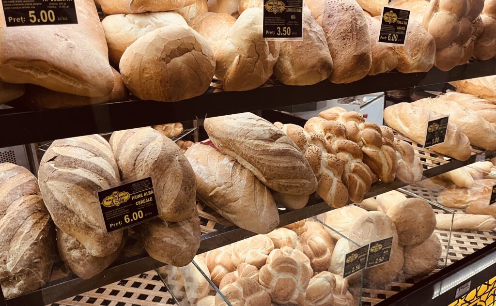 „Poți pune câteva felii de franzelă pe grătar, dacă dorești. Devine crocantă și capătă acel gust ușor afumat. Multora le place”, adaugă bucătarul. O pâine cu cereale costă la Obor 6 lei, iar una împletită albă ajunge la 5 lei.