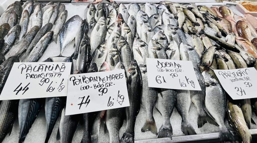 „Un crap este ușor de pregătit. Sau, de exemplu, poți lua păstrăv. Este un pește gustos, românesc, ideal dacă ai oaspeți care preferă astfel de preparate mai ușoare”, explică el. La Hala Obor, un kilogram de crap costă 28,90 de lei, cel de caras este 29,90 de lei, iar macroul de Norvegia este 34,90 de lei per kilogram. Dacă vrem să luăm crapul direct file, atunci vom scoate din buzunar 45 de lei pentru un kilogram.