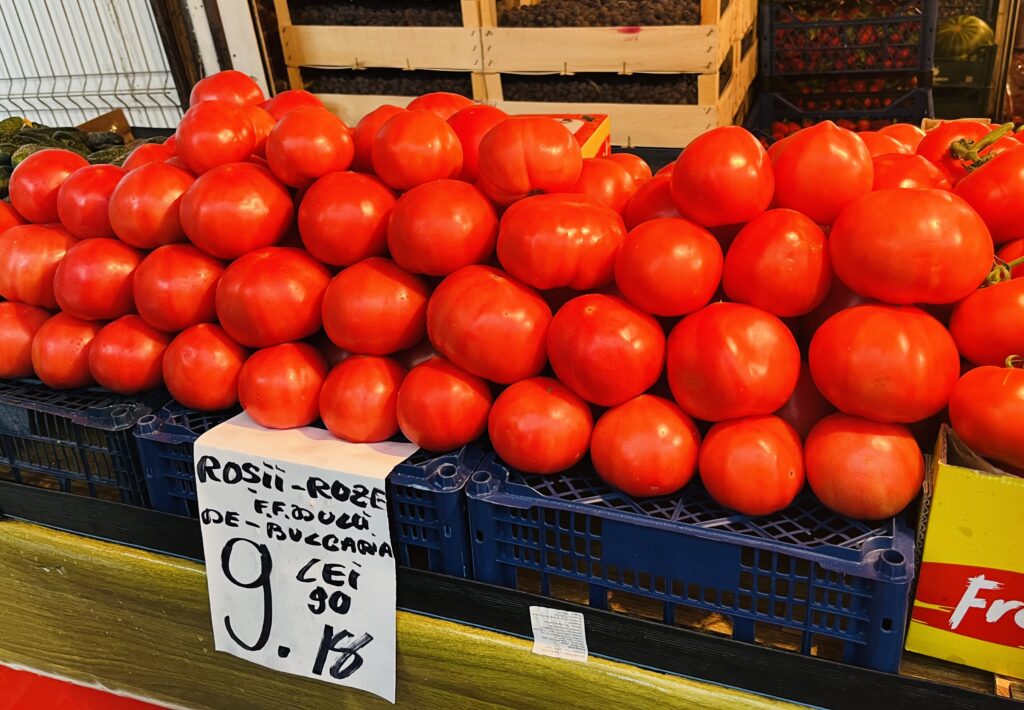 Un kilogram de roșii bulgărești se vinde la Hala Obor cu 9 lei, iar ceapa românească Diamant se găsește la tarabe la 5 lei per kilogram. Legumele și salatele „nu sunt doar ceva lângă carne”, spune Petrică Dumitrescu. „Ele trebuie să însoțească preparatul principal din carne, să aducă ușurință și diversitate într-un meniu dominat de mâncăruri grele”, spune el.