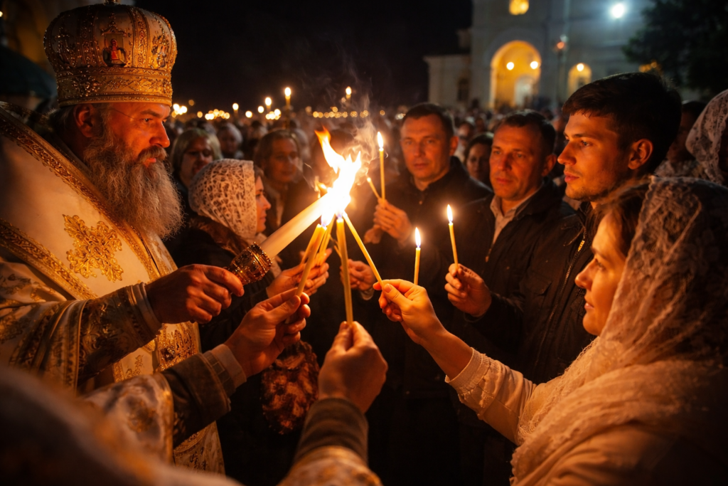 După primirea luminii, credincioșii își aprind unii altora lumânările, într-un gest de solidaritate și comuniune. Este un moment în care diferențele dispar, iar comunitatea se unește în jurul aceluiași simbol.