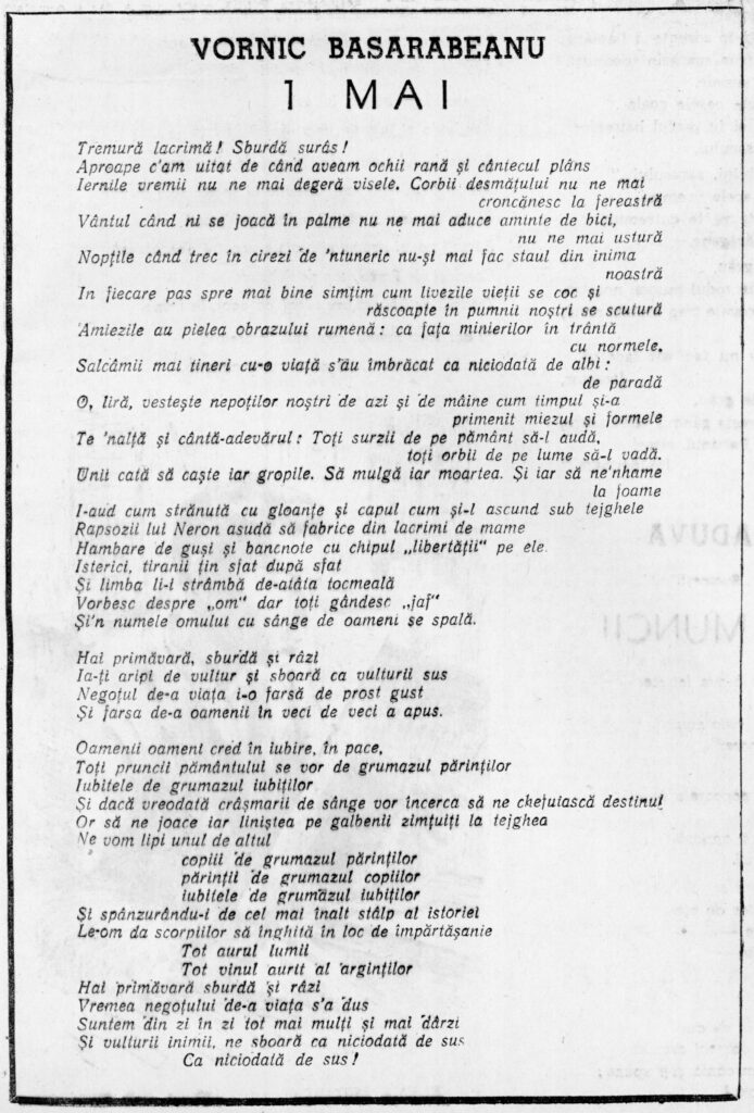 Dar chiar și în astfel de condiții, credința nu a dispărut. Uneori, ea se manifesta discret și ingenios. Un exemplu bun este cel al poetului Vornic Basarabeanu. În anul 1949, el a publicat o poezie în revista Flacăra. Inițialele versurilor formau, citite de jos în sus, mesajul „Hristos a Ȋnviat”. Însă, gestul preotului a fost descoperit de către autorități și el a plătit pentru curajul său. „Este un exemplu edificator”, spune Ilie Rad.