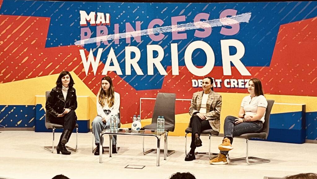 Apoi, sala se umple rapid, iar pe ecran începe documentarul. Episodul din „Princess Warrior” îi este dedicat de această dată Florentinei Olar, jucătoare de fotbal. Sportiva s-a retras anul trecut din activitate, după aproape 24 de ani petrecuți pe teren și până la 201 selecții la echipa națională, un record în fotbalul românesc, atât la masculin, cât și la feminin. Dar filmul nu începe cu recorduri, ci cu o fetiță care juca fotbal cu băieții în curtea școlii.