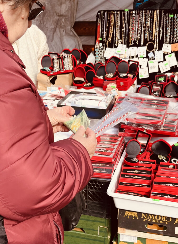 „Acestea sunt speciale! Nu le mai găsești în altă parte. Le aveam la 10 lei, ca ceilalți de pe aici, dar nu le dădeam și le-am pus acum la 7 lei. Și merg mai bine”, îmi explică doamna de la un stand din interiorul Halei strategia sa de comerciant. E o lecție rapidă de economie aplicată predată direct din spatele tarabei.