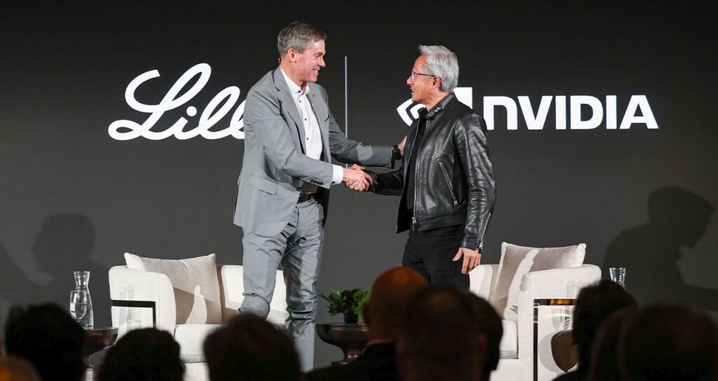 Dave Ricks, președintele și CEO-ul Lilly s-a întâlnit în ianuarie 2026 cu fondatorul și CEO-ul NVIDIA, Jensen Huang, la Conferința J.P. Morgan Healthcare pentru a discuta despre un nou laborator de coinovare bazat pe inteligență artificială, primul de acest fel, și despre viitorul biofarmaciei, spune Dave Ricks pe pagina sa de Linkdin.